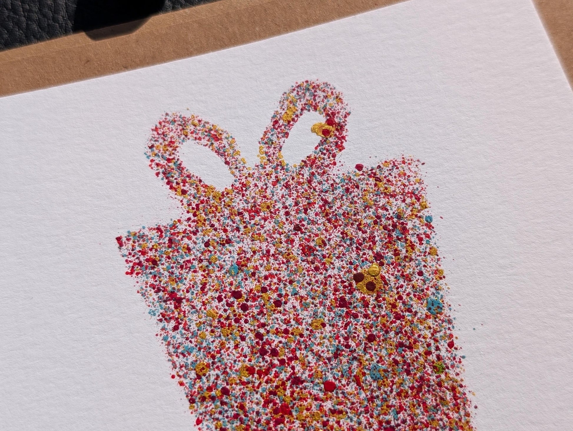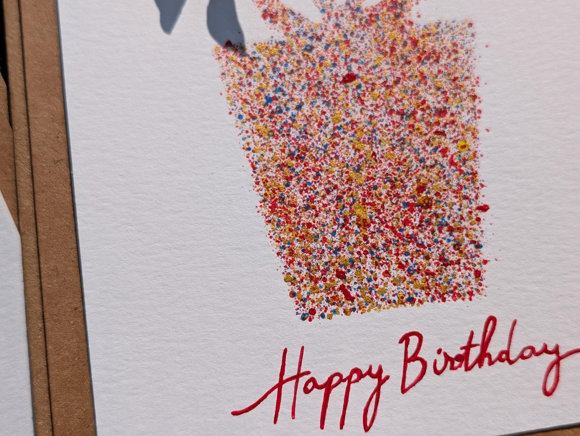 Hand Painted Birthday Card: Modern Gift Box Design, Set of 2 Cards