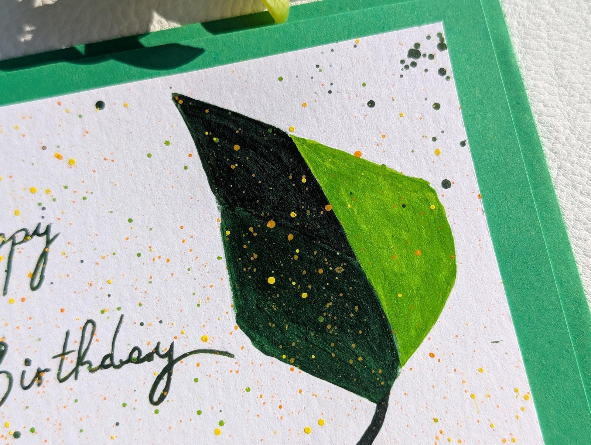 Hand painted Leaf Birthday Card: Original Acrylic Painting