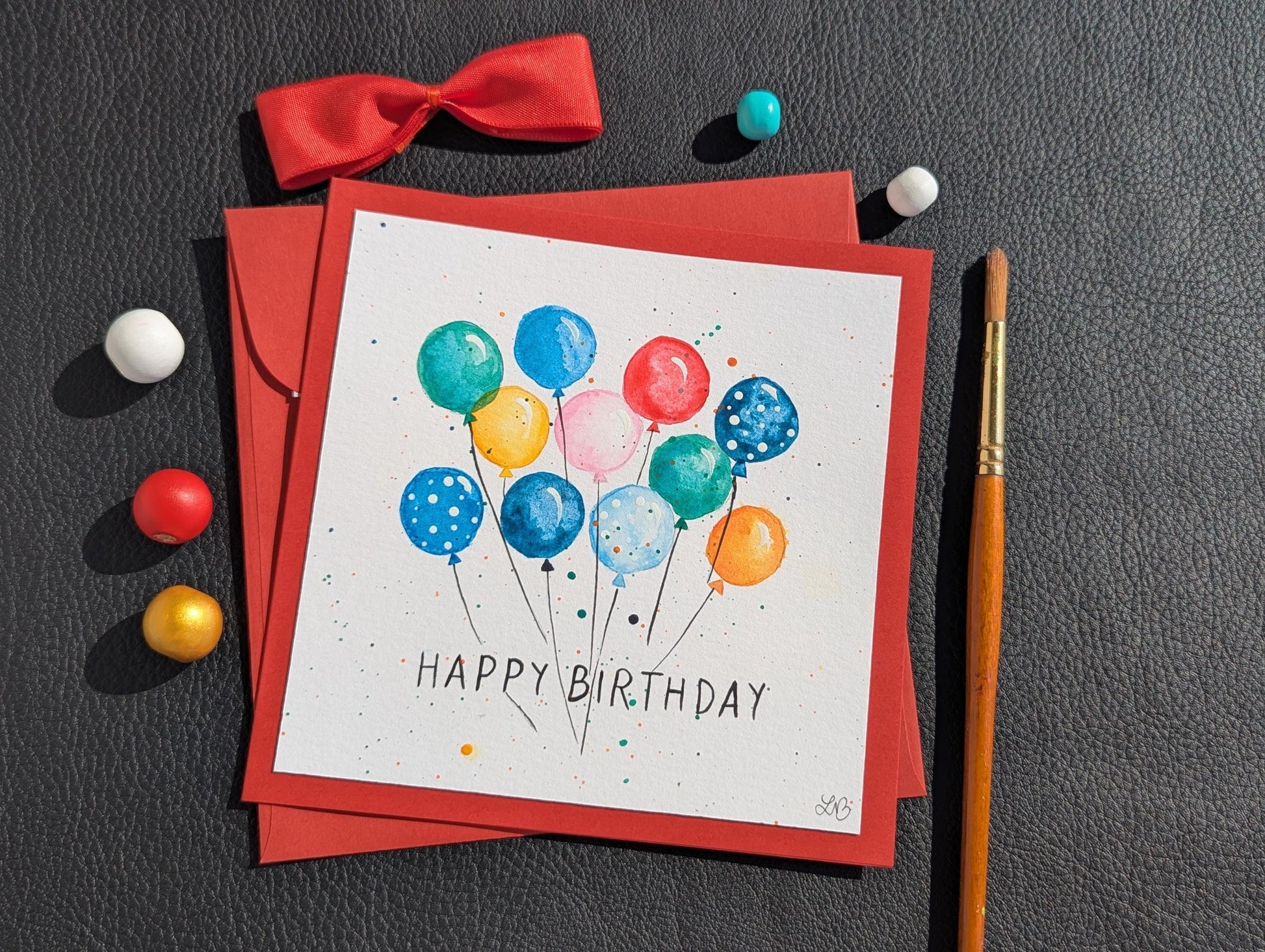 Handmade Balloon Birthday Card: Original Acrylic Painting