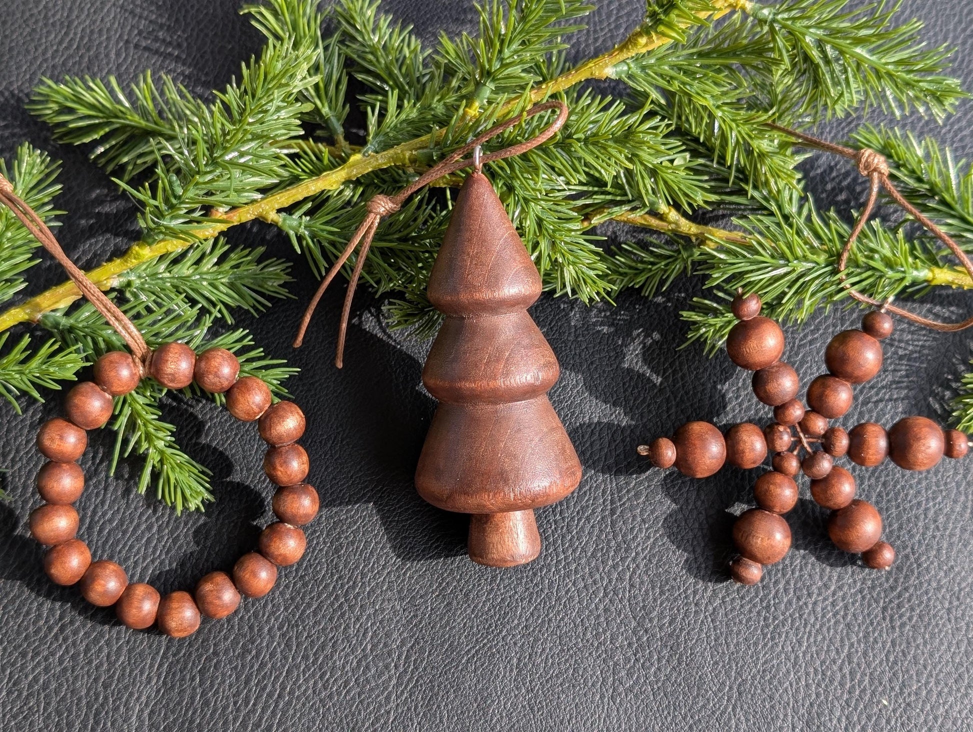 Get ready for the holidays with this handcrafted, one-of-a-kind wooden Christmas decoration set. These decorations add a touch of rustic charm to your Christmas tree, your festive table, or your entire holiday decor.