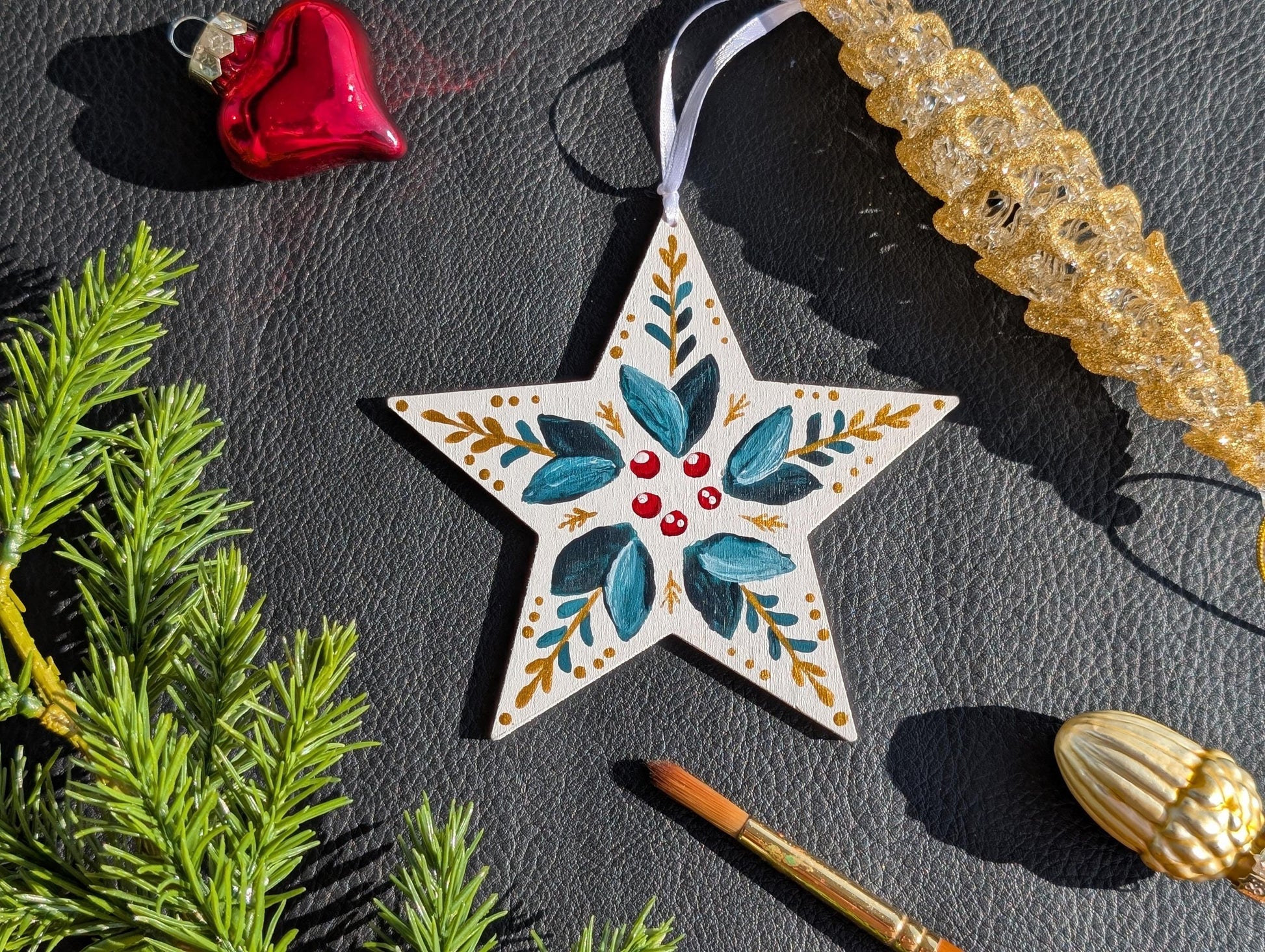 I designed this Christmas ornament to add a touch of rustic charm and coziness to your Christmas tree. It is entirely hand-painted in my small studio in Switzerland. It is lightweight, easy to hang, and makes a wonderful gift for family and friends.